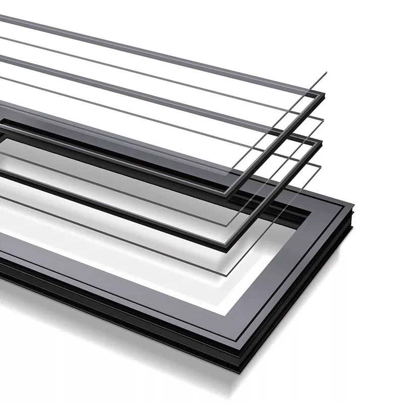 Konfigurasi maksimal yaiku telung lapisan kaca kothong, sing diisi gas inert, kanthi efektif nolak transmisi panas lan swara ing kaca, lan entuk penebat termal sing dhuwur lan efek insulasi swara sing dhuwur.